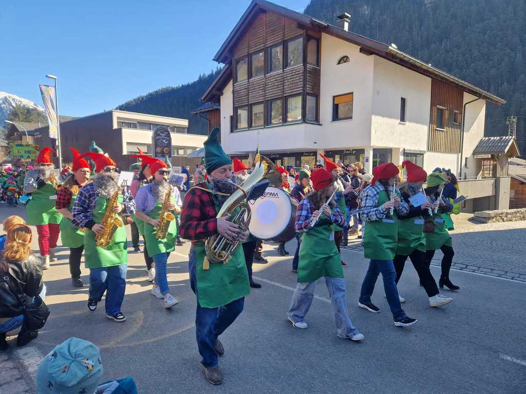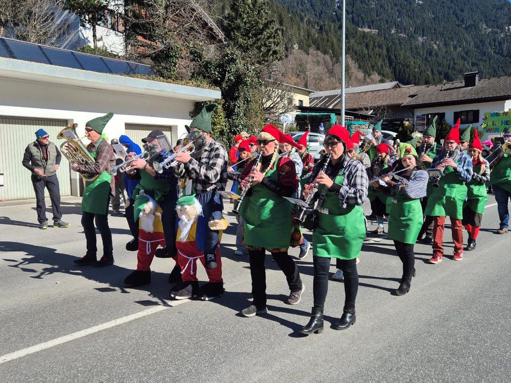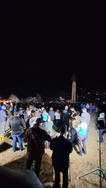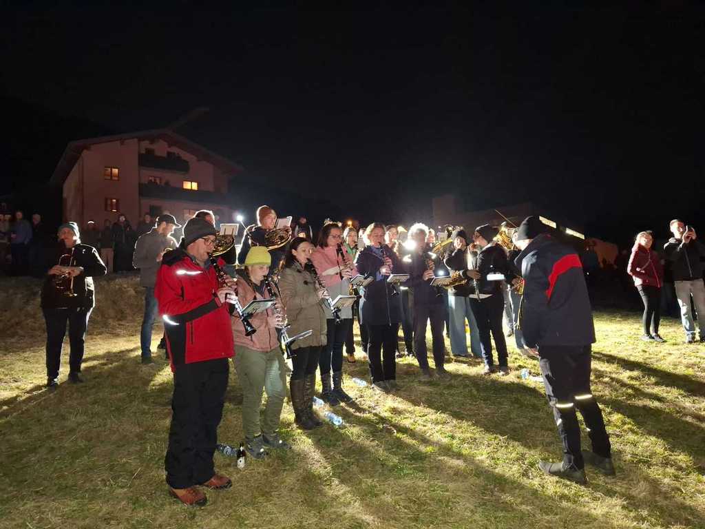 Lange hat es gedauert bis zu unserem 1. Auftritt im Jahre 2022. Und es war gleich ein besonderer. Nachdem im Gemeindegebiet St. Gallenkirch kein Funken abgebrannt wurde, folgten wir der Einladung der Bergfreunde aus Partenen und umrahmten den Funken hinter dem Vallülasaal. Traditionell spielen wir ja am Funkensonntag zuerst in St. Gallenkirch und anschließend beim Funken in Gargellen. Doch dieses Jahr, wie oben beschrieben, machten wir eine Woche nach Probenbeginn einen Besuch in den südlichsten Teil Vorarlbergs. Bei Glühmost, Punsch einer Funkenwurst und "Funkaküachli" spielten wir den zahlreichen Besuchern ein paar traditionelle Märsche und schauten dem Abbrennen der Funken zu. Wir bedanken uns für die Einladung und die Verpflegung bei den Bergfreunden und der Funkenzunft Partenen.